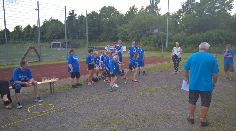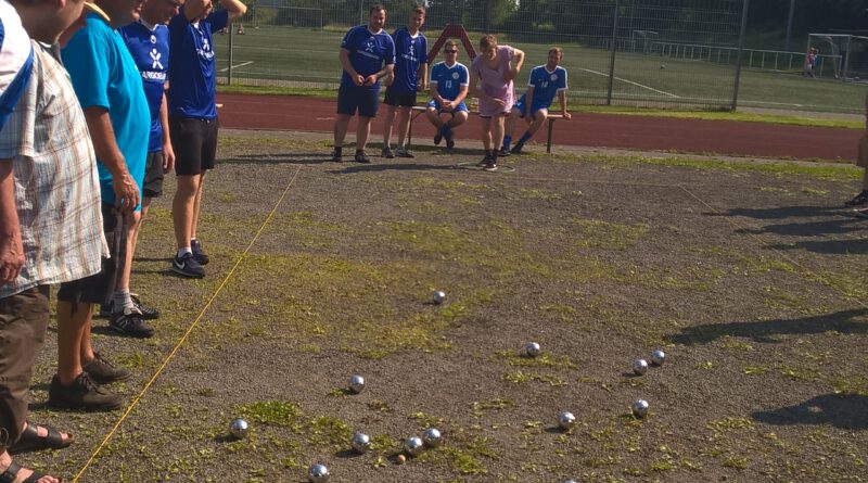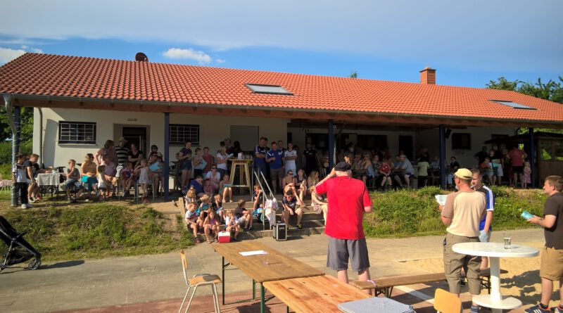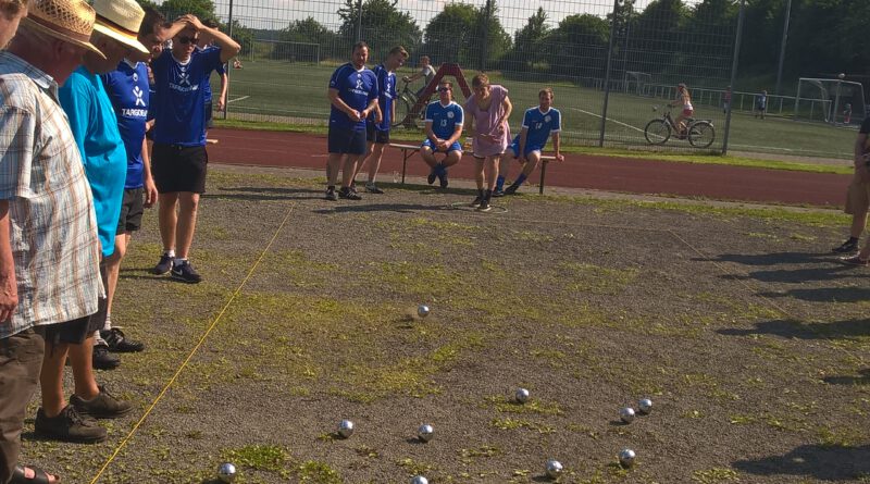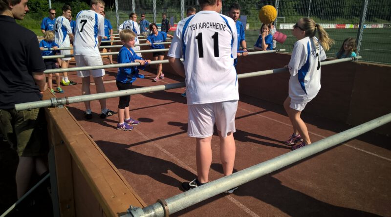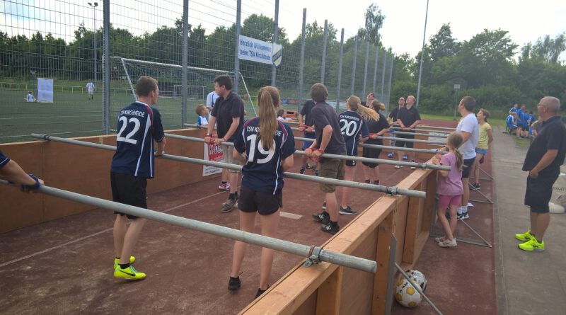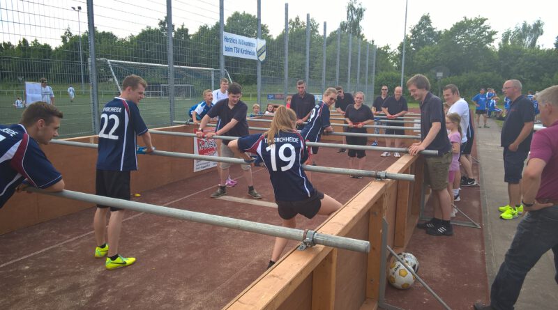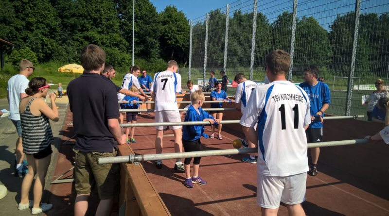 Am vergangenen Wochenende veranstalte der TSV Kirchheide sein traditionelles TSV-Wochenende bei strahlendem blau-weißem Himmel (den Vereinsfarben angepasst). Nachdem viele TSV-Senioren der Einladung zum Seniorenkaffee gefolgt waren, konnte LA-Wart Hans-Eckard Buschmeier zum 40. Jubiläum über 100 Aktive bei den leichtathletischen Vereinsmeisterschaften begrüßen. Auch hier wurden wieder viele gute Leistungen geboten, bevor es dann an die Eröffnung der neuen Boule-Bahnen unter der Regie von Franz Rikels ging. Diese neue Abteilung des TSV Kirchheide hat nun die Möglichkeit immer Dienstags abends ihrem Lieblingssport zu frönen. Ein Alt-Herrenspiel und das anschließende gemütliche Beisammensein ließen diesen Abend ausklingen. Nachdem am nächsten Morgen zunächst die F- und E-Jugendmannschaften um Punkte spielten, ging es anschließend bei weiterhin gutem Wetter mit dem Korbballturnier weiter. Der Nachmittag stand dann ganz im Zeichen des Kirchheider Dreikampfes. Teams wie Schnubbis Dreamteam, Ajax Dauerstramm, Sonnenhügel, Kirchheider Arschbratzen, Feuerwehr oder die Ritter der orangenen Kiste haben sich in den Disziplinen Korbball, Boule und Menschenkicker zum Teil hochklassige Partien geliefert. Den Wanderpokal konnte dann aber das Team „Lachse auf Achse“ aus den Händen vom 1. Vorsitzenden Dirk Hartwig in Empfang nehmen. Beim anschließenden G-C-F-K (Grillen-Chillen-Fässer-Killen) wurde die eine oder andere Spielszene nochmals intensiv diskutiert. Der Sonntagmorgen begann dann mit dem Freiluftfrühstucksbuffett „Untern Dach“. Das Team um Linde Hoberg, Gabi Nietzel und dem Festausschuss haben mit Ihren Speisen den über 8o Gästen wieder einmal einen hervorragenden Start in den Sonntag beschert, so dass die anschließenden letzten Saisonspiele der beiden Seniorenmannschaften incl. der diversen Verabschiedungen in Ruhe verfolgt werden konnten. Zum Abschluss überreichten Dirk Hartwig und Hans-Eckhard Buschmeier noch die Urkunden für die vielen Teilnehmer der Vereinsmeisterschaften vom Freitag. Dabei dankte Hartwig den vielen Besuchern der vergangenen drei Tage für Ihr kommen aber auch den vielen Helfern und Helferinnen und insbesondere dem Festausschuss, die für das gute Gelingen dieser Veranstaltung gesorgt haben. Er hofft, dass beim nächsten Event dem TSV-Wandertag am 03.07.2016 auch wieder viele Mitglieder dabei sind. Anmeldung sind auch möglich unter info@tsv-kirchheide.de.