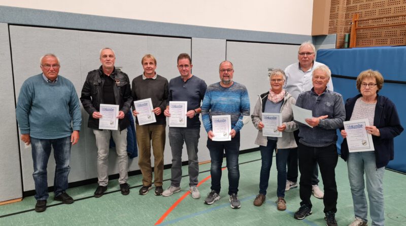 Nach den doch etwas kürzer ausgefallenen Berichten der Abteilungen (Besonderes Highlight die 82 Sportabzeichen des Jahres 2020) konnte Dirk Hartwig gemeinsam mit Günter Stock die zahlreichen Ehrungen des Abends durchführen.