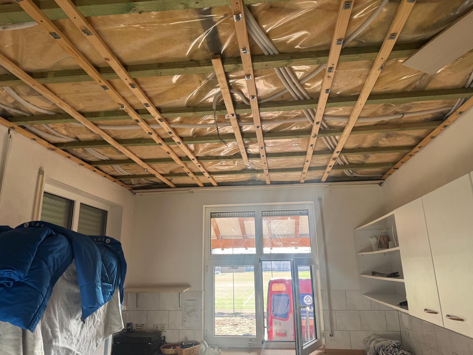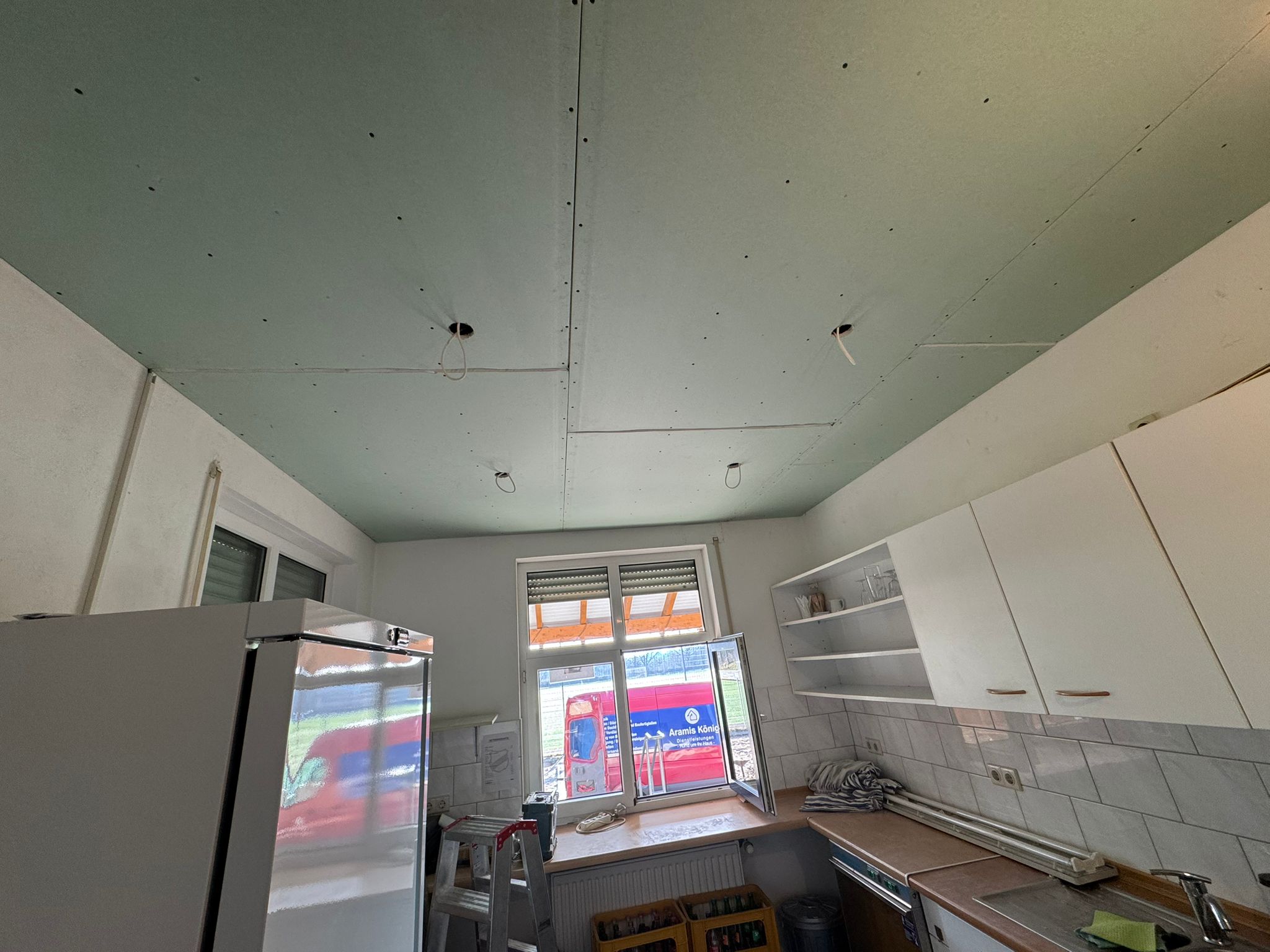 Die Arbeiten sind in vollem Gange: Die Decke wurde freigelegt und mit neuen Rigipsplatten verkleidet. Parallel dazu werden die Wände renoviert und die Elektrik auf den neuesten Stand gebracht. Anfang Februar wird dann die neue Kücheneinrichtung aufgebaut.