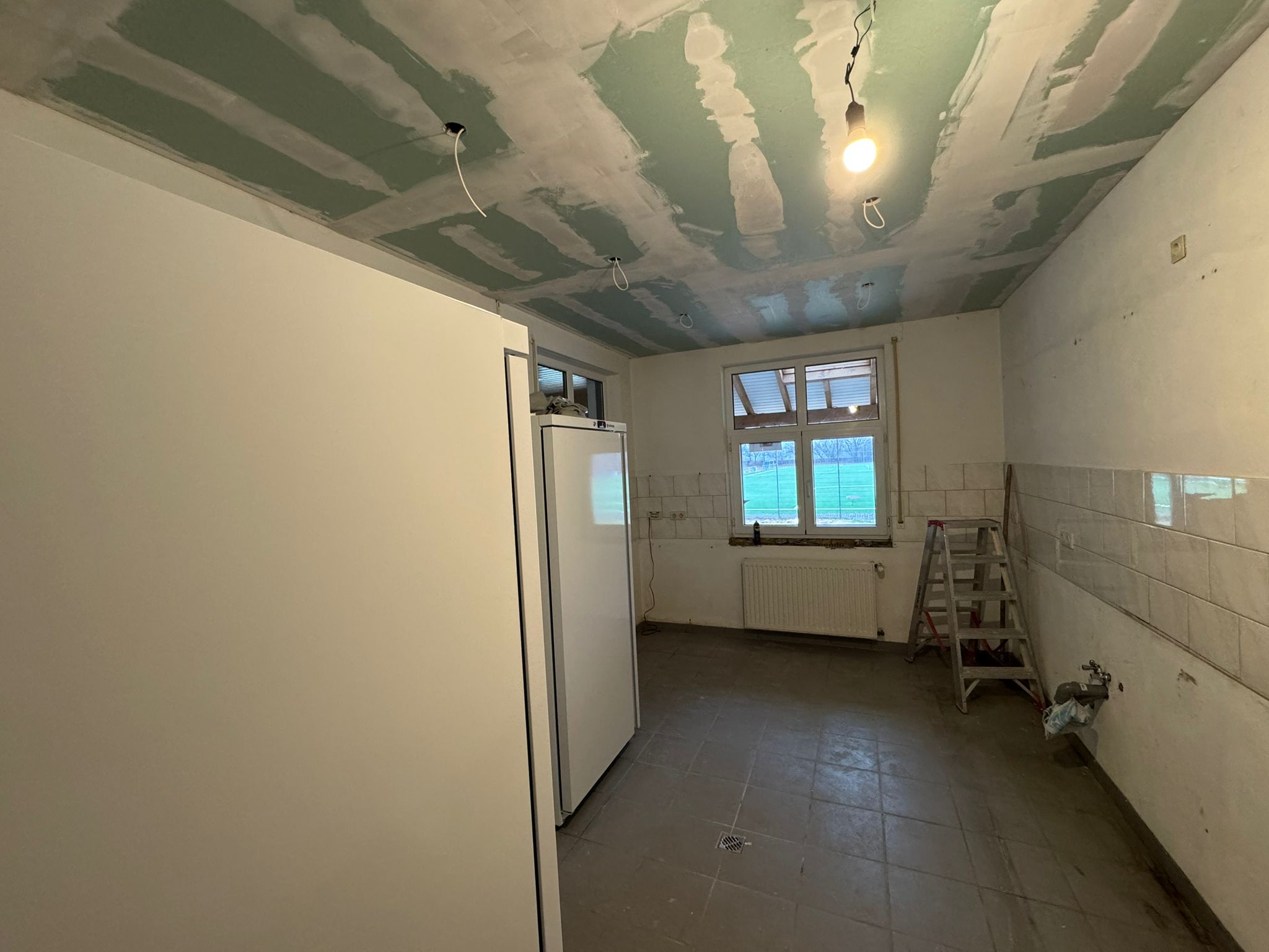 Jetzt stehen die letzten Vorbereitungen an: Die Decke erhält ihren Feinschliff, die Wände werden neu gestrichen und die Beleuchtung wird installiert. Sobald diese Arbeiten abgeschlossen sind, kann die neue Küche im Februar eingebaut werden.