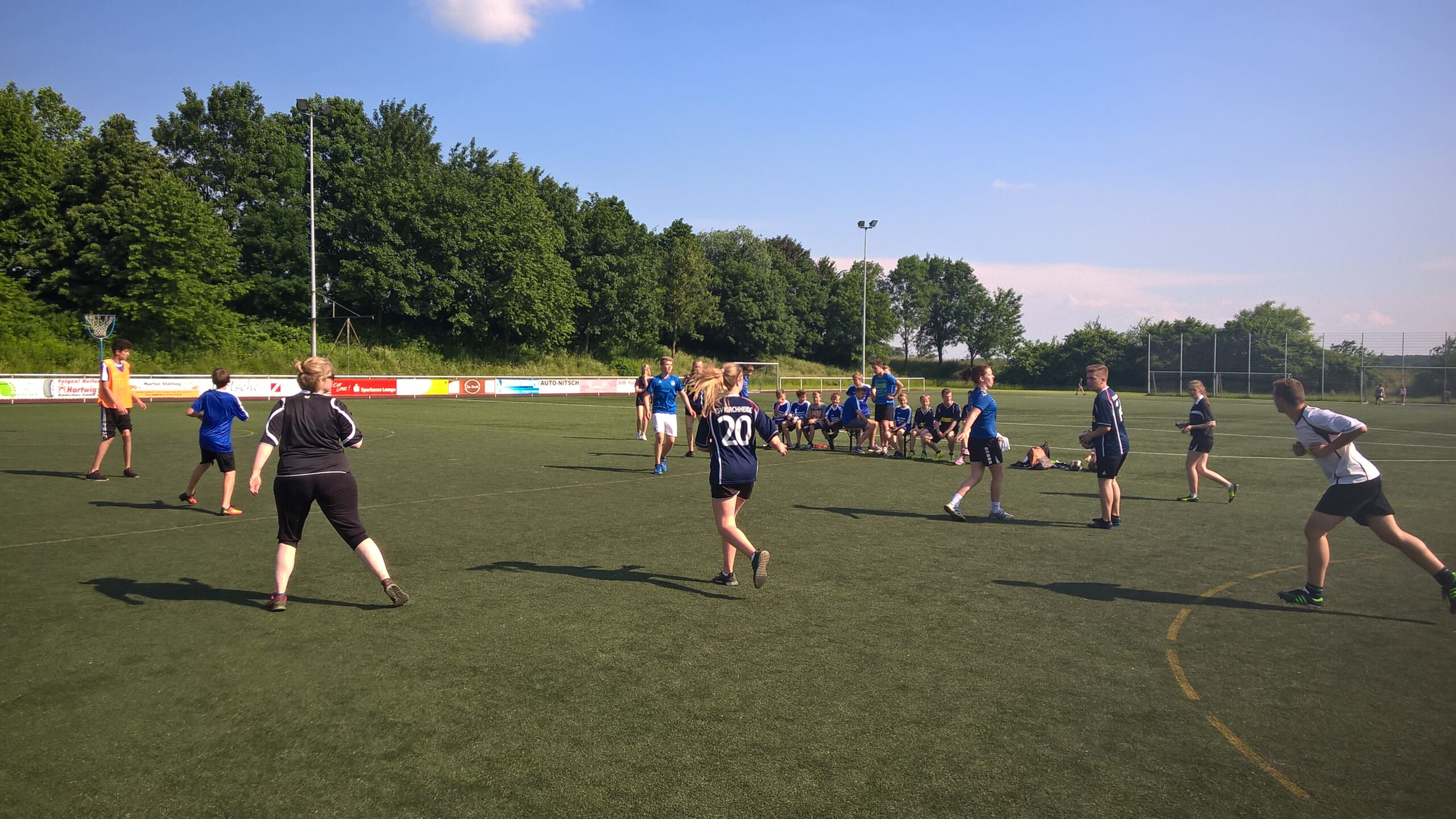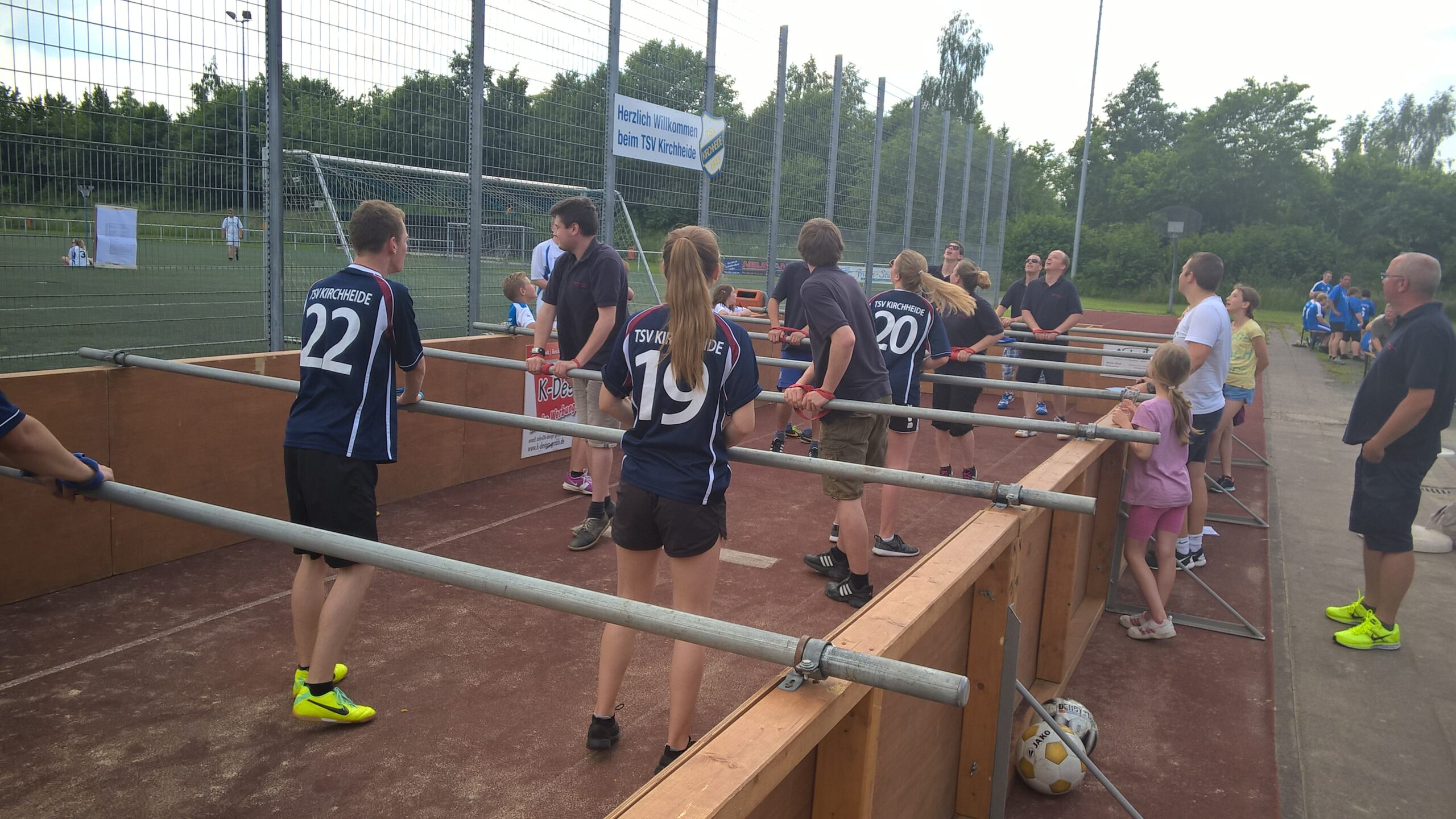 Am vergangenen Wochenende veranstalte der TSV Kirchheide sein traditionelles TSV-Wochenende bei strahlendem blau-weißem Himmel (den Vereinsfarben angepasst).  Nachdem viele TSV-Senioren der Einladung zum Seniorenkaffee gefolgt waren, konnte LA-Wart Hans-Eckard Buschmeier zum 40. Jubiläum über 100 Aktive bei den leichtathletischen Vereinsmeisterschaften begrüßen. Auch hier wurden wieder viele gute Leistungen geboten, bevor es dann an die Eröffnung der neuen Boule-Bahnen unter der Regie von Franz Rikels ging. Diese neue Abteilung des TSV Kirchheide hat nun die Möglichkeit immer Dienstags abends ihrem Lieblingssport zu frönen. Ein Alt-Herrenspiel und das anschließende gemütliche Beisammensein ließen diesen Abend ausklingen. Nachdem am nächsten Morgen zunächst die F- und E-Jugendmannschaften um Punkte spielten, ging es anschließend bei weiterhin gutem Wetter mit dem Korbballturnier weiter. Der Nachmittag stand dann ganz im Zeichen des Kirchheider Dreikampfes. Teams wie  Schnubbis Dreamteam, Ajax Dauerstramm, Sonnenhügel, Kirchheider Arschbratzen, Feuerwehr oder die Ritter der orangenen Kiste haben sich in den Disziplinen Korbball, Boule und Menschenkicker zum Teil hochklassige Partien geliefert. Den Wanderpokal konnte dann aber das Team „Lachse auf Achse“ aus den Händen vom 1. Vorsitzenden Dirk Hartwig in Empfang nehmen. Beim anschließenden G-C-F-K (Grillen-Chillen-Fässer-Killen) wurde die eine oder andere Spielszene nochmals intensiv diskutiert. Der Sonntagmorgen begann dann mit dem Freiluftfrühstucksbuffett „Untern Dach“. Das Team um Linde Hoberg, Gabi Nietzel und dem Festausschuss haben mit Ihren Speisen  den über 8o Gästen wieder einmal einen hervorragenden Start in den Sonntag beschert, so dass die anschließenden letzten Saisonspiele der beiden Seniorenmannschaften incl. der diversen Verabschiedungen in Ruhe verfolgt werden konnten. Zum Abschluss überreichten Dirk Hartwig und Hans-Eckhard Buschmeier noch die Urkunden für die vielen Teilnehmer der Vereinsmeisterschaften vom Freitag. Dabei dankte Hartwig den vielen Besuchern der vergangenen drei Tage für Ihr kommen aber auch den vielen Helfern und Helferinnen und insbesondere dem Festausschuss, die für das gute Gelingen dieser Veranstaltung gesorgt haben. Er hofft, dass beim nächsten Event dem TSV-Wandertag am 03.07.2016 auch wieder viele Mitglieder dabei sind. Anmeldung sind auch möglich unter info@tsv-kirchheide.de.