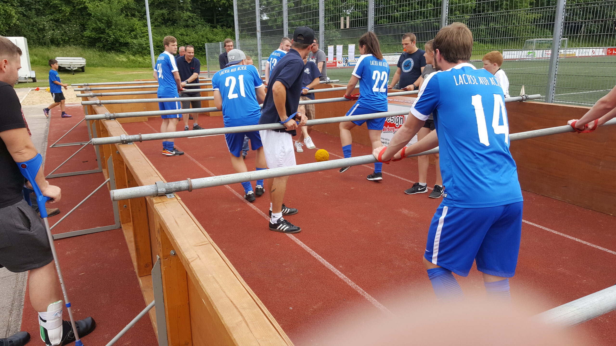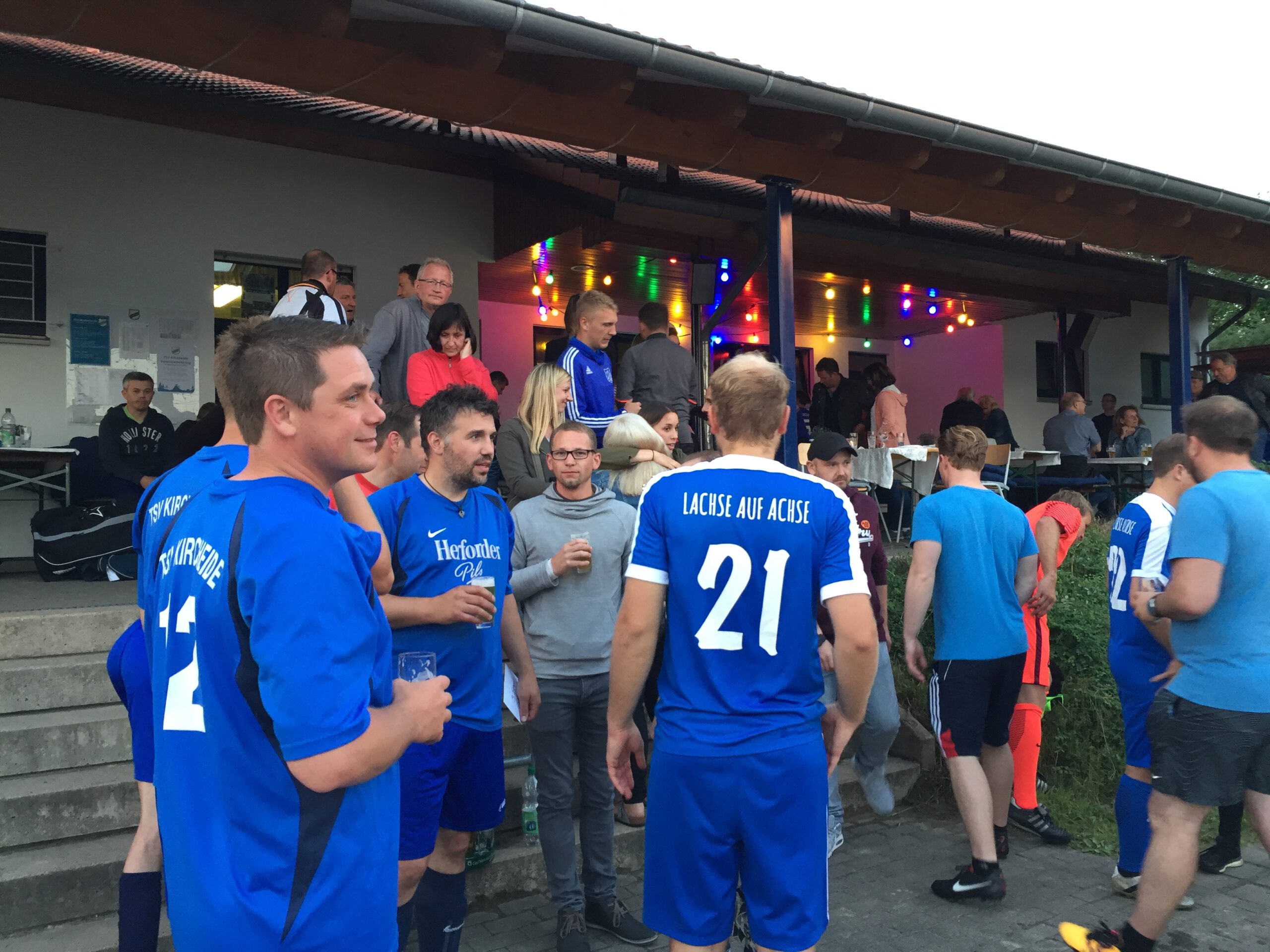 Nahezu pünktlich zum Beginn des TSV Wochenendes hatte der Wettergott ein Einsehen und stellte die Regenschleusen zu und ließ sie auch die nächsten 3 Tage geschlossen. So konnte die große TSV-Familie mit dem traditionellen Seniorenkaffee starten bevor es dann mit den leichtathletischen Vereinsmeisterschaften weiterging. Hier haben sich zwar deutlich weniger Mitglieder als noch im letzten Jahr gemessen, dennoch wurde die eine oder andere Höchstleistung erzielt. Zum Abend dann startete dass wieder ins Leben gerufene Hobbykickerturnier mit 7 Mannschaften. Nach den zum Teil torreichen Begegnungen in der Gruppephase ging es dann in den Halbfinals sehr spannend zu. Im abschließenden 9m-Schiessen um Platz 3 siegte die A.H. des TSV gegen Firma Sollich mit 3:2 Toren. Auch das anschließende Finale musste ins 9m-Schiessen gehen. Hier setzten sich die „Lachse auf Achse“ mit 4:3 Toren gegen die Betriebsmannschaft von Brasseler durch. Anschließend wurden die Spiele und Ergebnisse bei Essen, Trinken und guter Musik noch bis in die späte Nacht diskutiert.