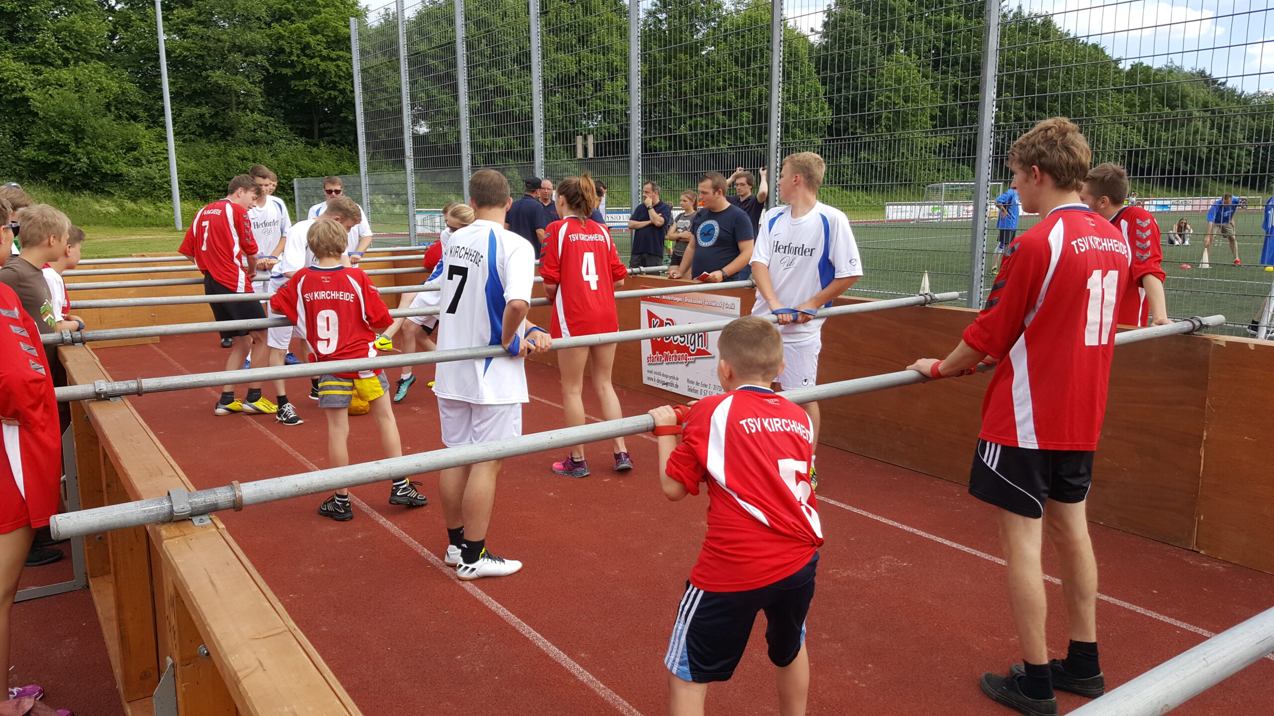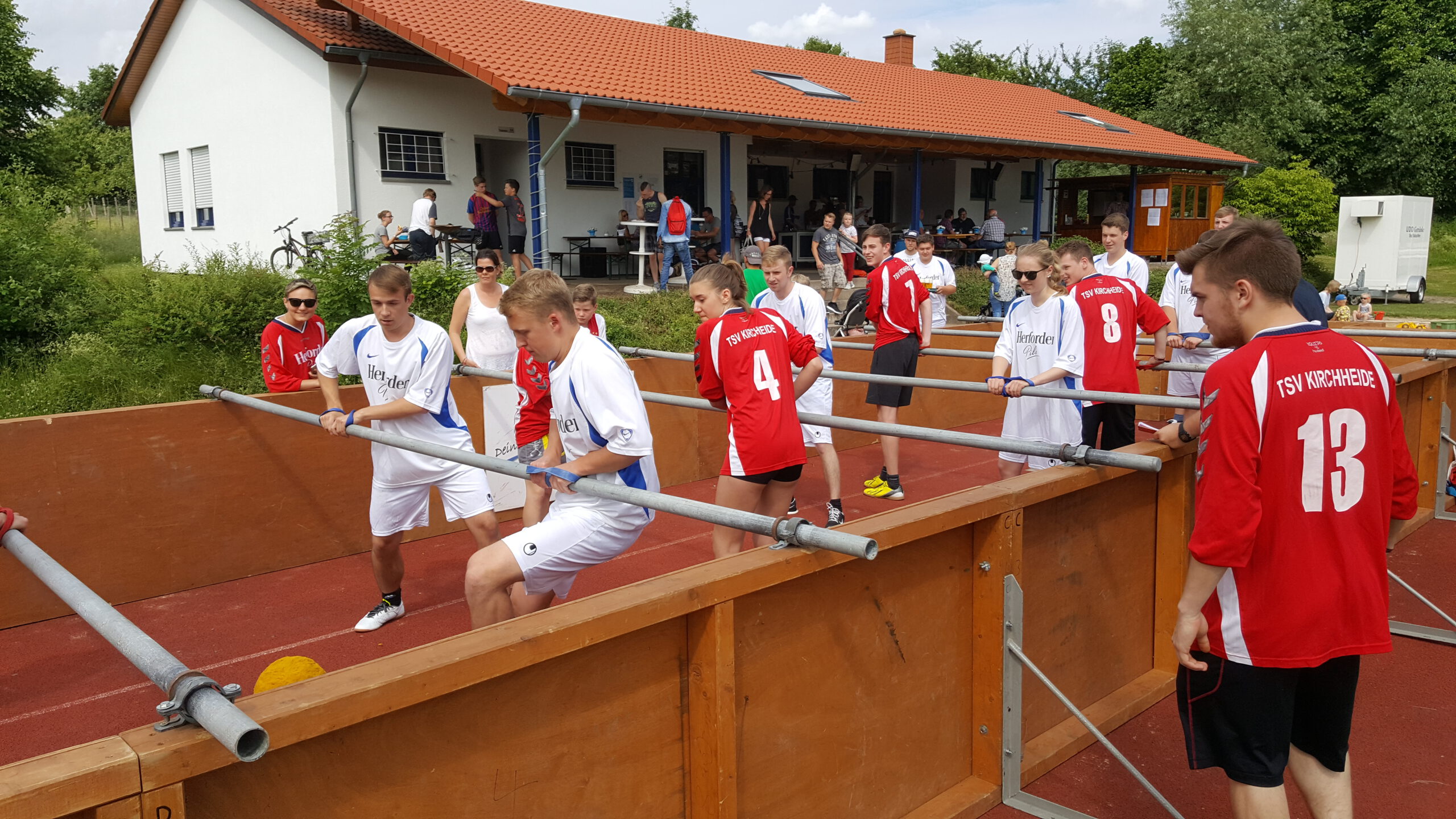 Der Samstag startete dann mit diversen Jugendspielen bevor es am Nachmittag zur 2. Auflage des Kirchheider Dreikampfs kam. Die insgesamt 9 Mannschaften lieferten sich viele zum Teil spannende Duelle in den Sportarten Menschenkicker, Boule und Völkerball. Am Ende des Abends musste der Titelverteidiger die „Lachse auf Achse“ den Wanderpokal an das Team von Ajax Dauerstramm übergeben. Diese siegten mit sehr guten 19 Punkten und somit 4 Punkten Vorsprung vor dem Team der Freikirchlichen Gemeinde Kirchheide und den punktgleichen „Lachse auf Achse“, „Kirchheider AltStars“ und der Feuerwehr Kirchheide.